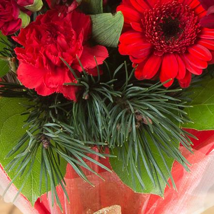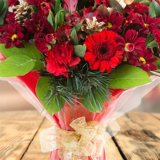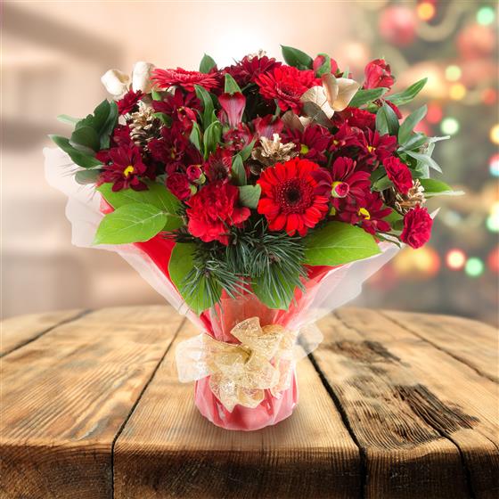 A popular Christmas bouquet with eucalyptus and spruce this bouquet not only looks Christmassy but smells Christmassy too!